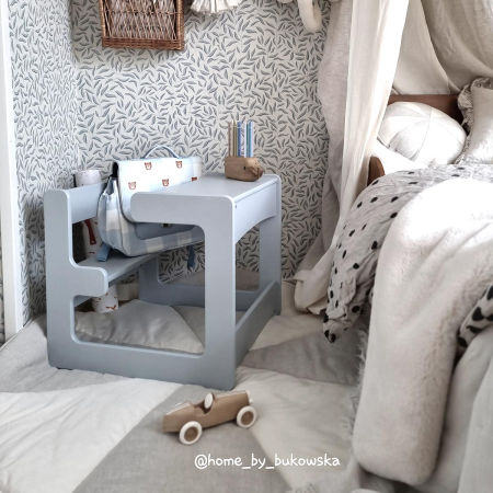 Wielofunkcyjne biurko dla dziecka. Mały mobilny mebelek świetnie sprawdzający się podczas spożywania posiłków, malowania, zabawy klockami oraz w zasadzie do wszystkiego co można robić w pozycji siedzącej.