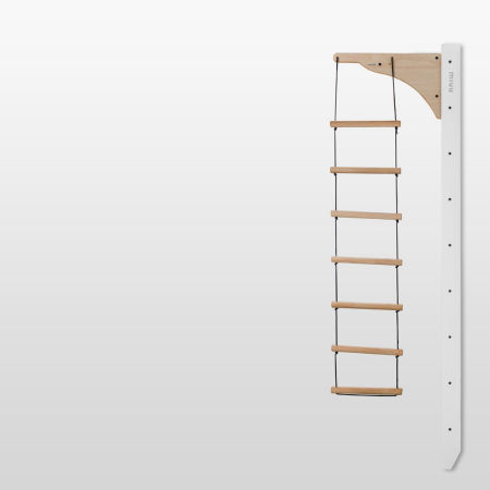 Drewniana drabinka pleciona sznurkiem polipropylenowym.