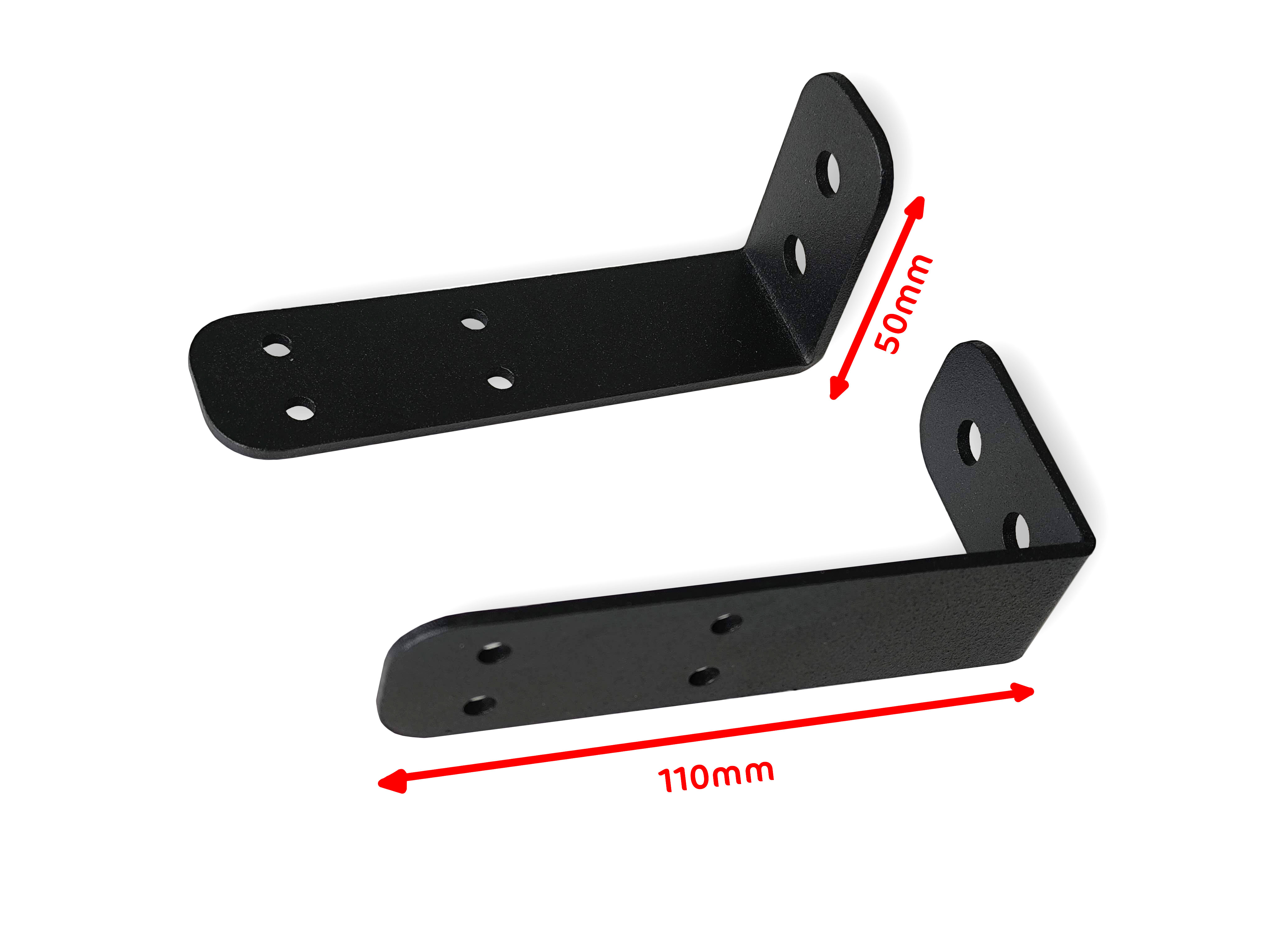 Kupujesz zestaw 4 sztuk metalowych kątowników dystansowych o wymiarze 110 x 50 mm.